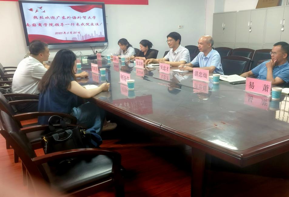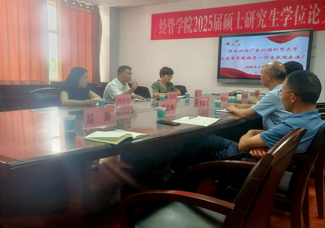 2025年5月20日上午,为推进学科建设高质量发展,广东外语外贸大学南国商学院经济学院院长苏武俊、管理学院执行院长文佑云、管理学院行政秘书何诗莹一行三人来到yL23411永利集团官网登录,就独立学院转设及硕士点建设等重要事项开展学习交流活动,旨在共商高等教育发展新路径。