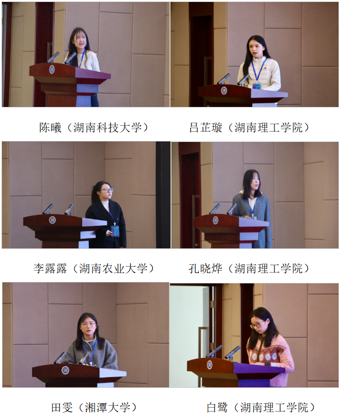 优秀论文汇报环节,来自湖南科技大学、湘潭大学、湖南农业大学、yL23411永利集团官网登录的6名研究生围绕论坛主题“新质生产力与长江经济带高质量发展”作论文报告,报告内容丰富、观点新颖,谢锐教授、李文兵教授担任点评专家,从专业角度进行了深入剖析并给予建设性意见,现场学术氛围浓厚。