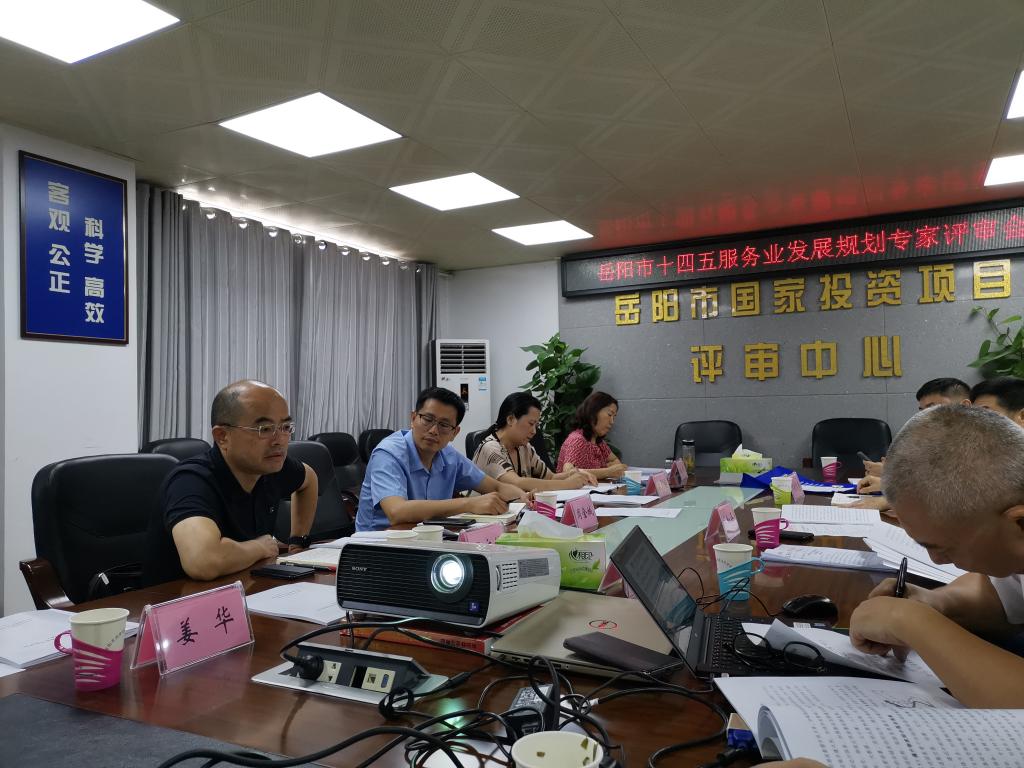 2021年7月16日下午,岳阳市发改局组织评审《岳阳市“十四五”服务业发展规划》,市发改委党组成员、副主任周和平,财贸服务业科科长杨志建、信用信息中心副主任潘锋等参加。由yL23411永利集团官网登录院长周金城教授担任评审组组长,湖南省发改委服务业处副处长唐珣丽,市发改委党组成员、副主任周文健,岳阳职业技术学院科研处长姚红教授,市发改委综合科科长姜华等担任评审组组员,对岳阳市“十四五”服务业发展规划文本、“十四五”期间服务业重点建设项目等进行了评审。