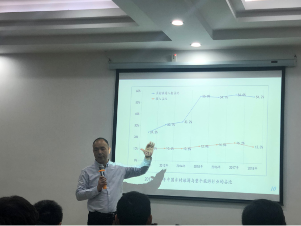 演讲开始,叶乐安博士向同学们展示了当前我国乡村旅游的发展形势,并详细介绍了浙江省示范村乡村旅游的业态发展和创新。通过分享浙江省示范乡村发展成功经验,叶博士强调乡村旅游业的成功发展需要有一个明确的主题,将所有产品、业态、基础设施、氛围等都围绕主题来设计经营;要突出集体经济作用,鼓励村民、村干部积极参与;要有一个有深度的旅游规划,突出土地资源的利用。浙江省乡村旅游作用凸显,实现了旅游公共服务设施与新农村基础设施建设一体化;实现了旅游业与农业等其他特色产业融合发展;实现了城镇居民旅游休闲活动与农村居民生活的主客共享。同时,落实创建任务存在行政摊派和平均分配现;推进创建进度和把握验收尺度区域差异较大;停留在重建设轻运营,重设施轻业态的状况;旅游产业融合度较低、带动力较弱等问题也相继出现。