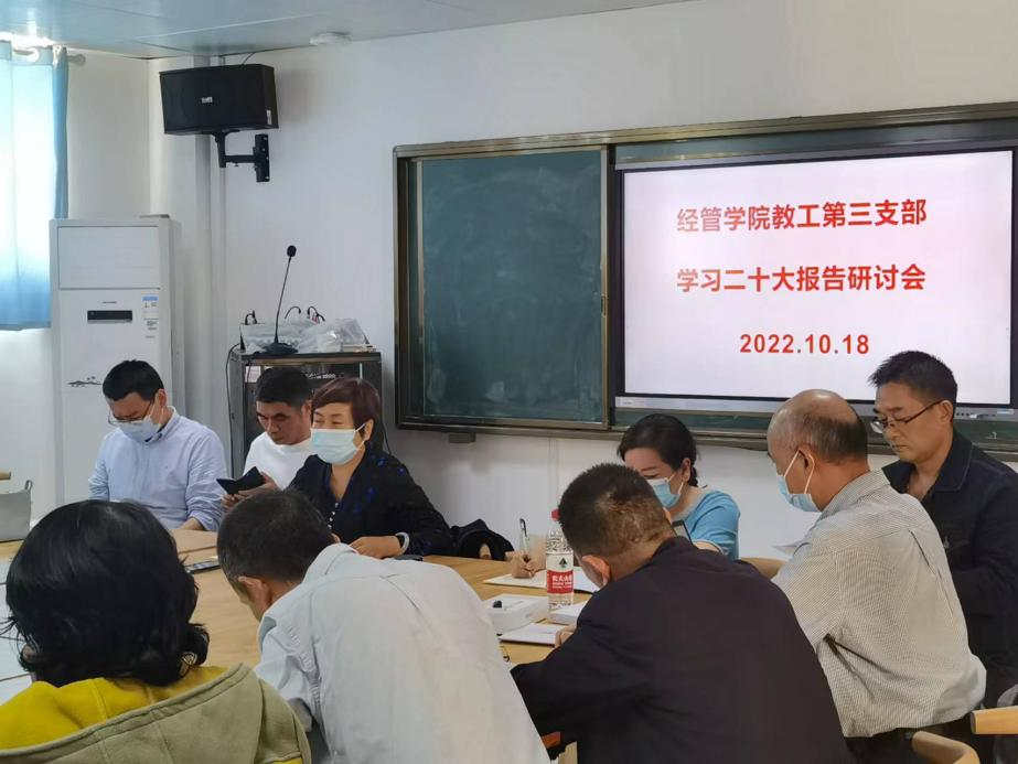 10月18日下午,经管学院国贸金融教研室、行政财会教研室、旅游人力教研室教师围绕党的二十大报告,分享个人学习心得。会上,老师们纷纷畅谈学习习近平总书记重要讲话精神的体会和感悟,表示要牢记为党育人、为国育才使命,紧紧围绕立德树人根本任务,着力在创新教学形式、提高课堂效果等方面下功夫,为加快建设教育强国、科技强国、人才强国贡献力量。