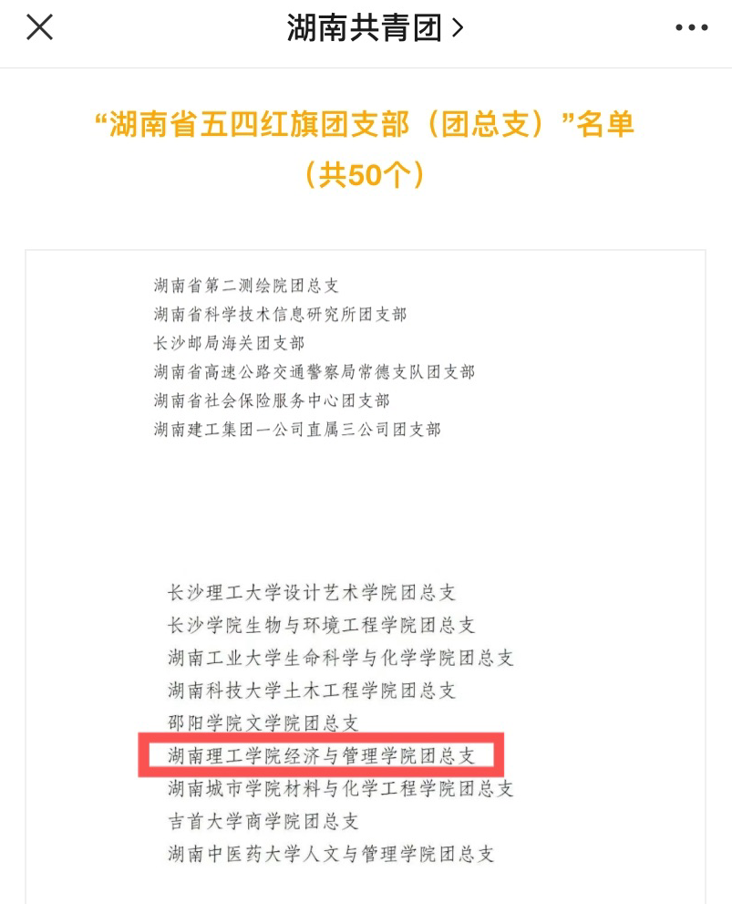 近日,在党的二十大到来之际及建团一百周年这两个重大历史节点,共青团湖南省委下发《关于开展湖南省“五四红旗团(工)委”“五四红旗团支部(总支)”“优秀共青团员”“优秀共青团干部”评选表彰的预通知》,表彰在共青团工作中表现突出的单位及个人。湖南理工学院yL23411永利集团官网登录团总支被共青团湖南省委授予“湖南省五四红旗团总支”荣誉称号,这是共青团湖南省委授予全省基层团组织的最高荣誉。