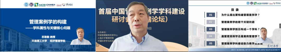 接着,中国管理案例中心创始人、中国科学学与科技政策研究会企业创新与产业政策专业委员会主任委员、研讨会(高端论坛)发起人、大连理工大学苏敬勤教授发表主旨报告。围绕“管理案例学的构建——学科属性与关键核心问题”主题,苏敬勤教授从管理案例学构建的原因、学科建设若干关键问题等方面对“管理案例学”这一新生学科进行了全面系统分析,明确了管理案例学具有助力赋能新时代商学院发展的重要使命!