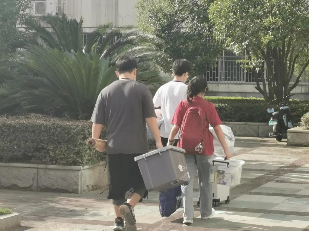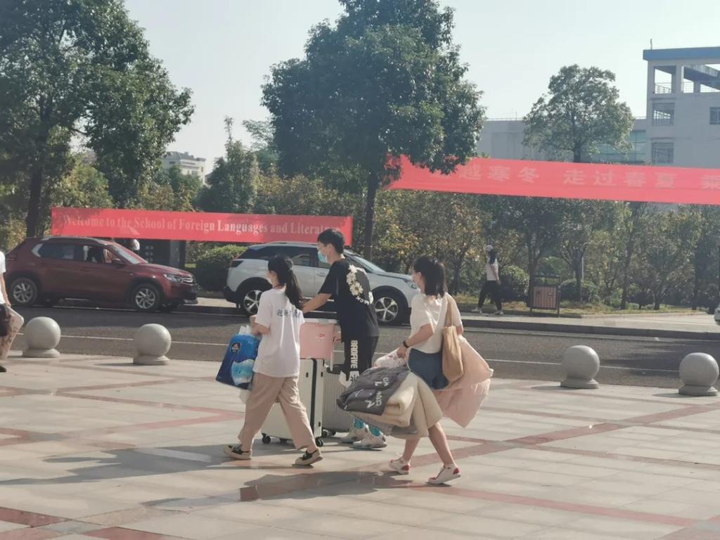 迎新志愿者是迎新当天一道靓丽的“风景线”。由于学校实行封校管理,家长无法进入学校陪同新生,经管学院在新生入学之前完成了对志愿者的统筹安排以及相关培训,采用“一对一”的方式为新生提供服务。志愿者们不惧骄阳烈日,带领新生找到相应班级报道,帮助他们将行李搬到宿舍,从报道到宿舍一路指引陪同,齐心协力,为“新”而动。