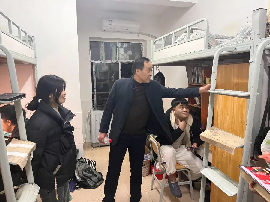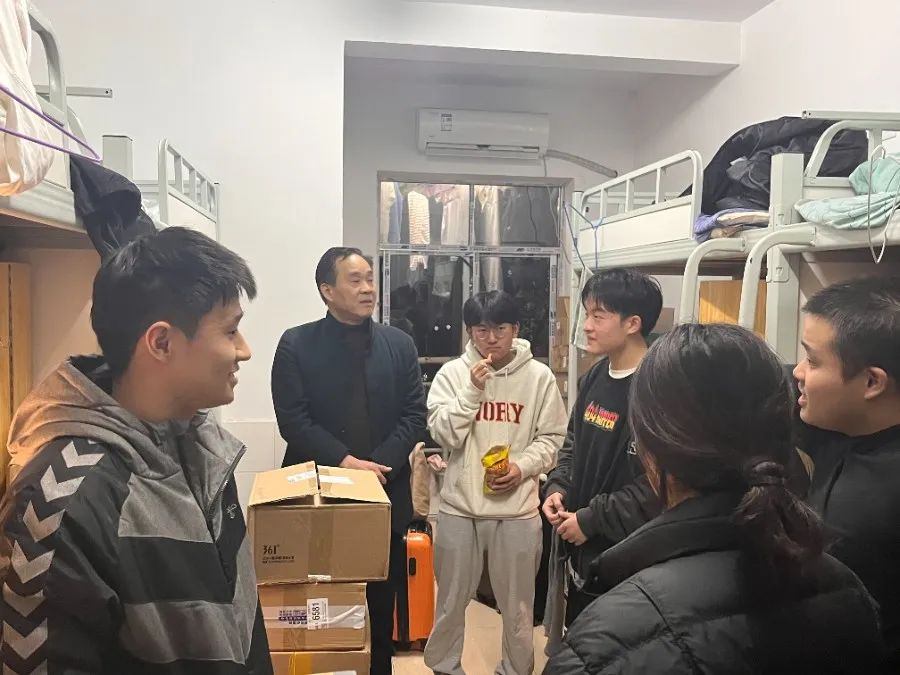 走访期间黎书记与同学们进行沟通,关切同学们的寝室生活,强调用电安全问题并且询问毕业生的论文情况以及就业情况为即将毕业的学子提出了有关未来选择的有效建议。周院长特别提醒同学们近期流感高发,注意开窗通风,做好保暖措施。