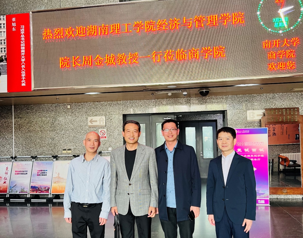 2023年3月30日,yL23411永利集团官网登录院长周金城教授、副院长吴忠才教授一行,赴南开大学商学院考察交流。