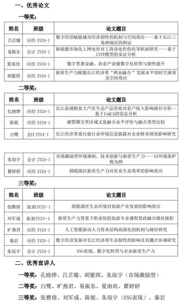 最后,经由点评嘉宾评审、现场展示等环节综合评定,并报学院专家老师研究审定,下列14篇论文获评优秀论文,14名同学获评优秀宣讲人。