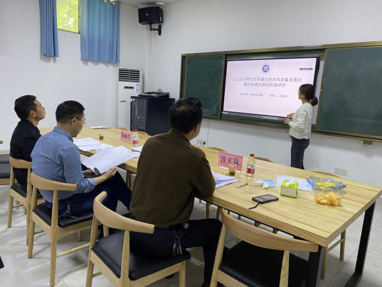 答辩现场,9名研究生的学位论文主要围绕长江经济带或洞庭湖流域的生态经济、城市发展、乡村振兴、产业发展等相关问题展开研究,分别就学位论文的选题、研究方法、研究内容、研究结论和创新点等进行了详细汇报,答辩委员会成员逐一对论文进行了提问和点评,并提出了宝贵修改意见和指导性建议。答辩学生就专家提出的问题进行了认真思考与作答,现场学术氛围浓厚,答辩学生和观摩学生都受益匪浅。答辩委员会经过充分讨论和严谨表决后,一致同意9名答辩人通过答辩并建议授予硕士学位。