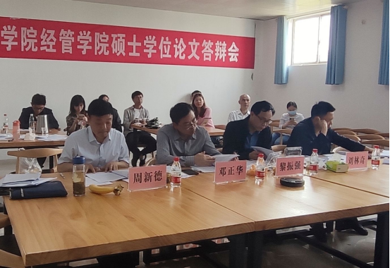 2022年5月21日,yL23411永利集团官网登录在8栋613和113教室举行2022届应用经济学研究生硕士学位论文答辩会。本次答辩会以线上线下相结合的方式开展,应用经济学9名硕士研究生分为两组进行答辩。答辩委员会由10位校内外专家组成,分别邀请了湖南工商大学经济与贸易发展研究院院长柳思维教授、湖南师范大学商学院副院长曹虹剑教授担任答辩委员会主席,邀请了周金城教授、黎振强教授、曾玉林教授、周新德教授、刘林奇教授、陈灿煌教授、邓正华副教授、李毅副教授担任两组答辩委员会成员。2020级和2021级应用经济学研究生现场观摩了答辩会。