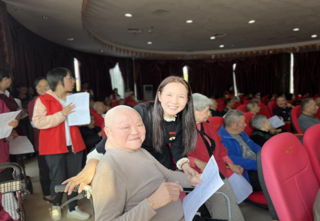 10月23日下午1点,参加活动的志愿者满怀热情,带着服务之心,关爱之心,乘坐公交车,来到了心念已久的岳阳国泰阳光颐养院。此次活动在国泰阳光颐养院的演播厅进行,午后阳光刚至,同学们便已集合在颐养院门口,而工作人员也将老人们推扶到大厅。温馨的暖阳映着一张张笑脸,愉快的氛围里,同学们都很期待志愿活动的展开。活动开始前,志愿者代表高余同学带领志愿者们了解并熟悉颐养院的大致环境和情况,并与负责不同区域的志愿者们进行细致地交流,特地嘱咐要注意爷爷奶奶们的身体状况和情绪状态。