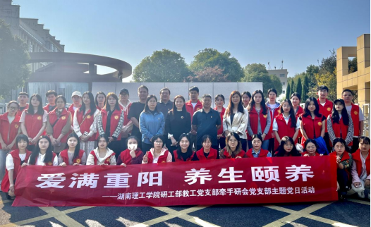 岁岁重阳,今又重阳,不是春光,胜似春光。金风送爽,我们迎来了我国传统节日——九九重阳节。为庆此佳节,深入贯彻党的二十大精神,落实习近平总书记关于老龄工作重要指示,全面做好“敬老月志愿服务关爱行动”,大力弘扬孝老爱亲传统美德,营造爱老助老社会氛围,推动精神文明建设。2023年10月23日下午,yL23411永利集团官网登录研究生工作部党总支组织教工党支部牵手研究生会党支部、yL23411永利集团官网登录学生第四党支部走进岳阳国泰阳光颐养院,开展“爱满重阳 养生颐养”主题党日活动,研究生工作部党总支书记李丽荣、研究生工作部田小勇副部长、yL23411永利集团官网登录研究生党支部书记易萧等领导老师出席本次活动,由yL23411永利集团官网登录及校研会的36名研究生担任志愿者参与本次志愿服务,为国泰阳光颐养院的百名老人送去温暖与祝福。
