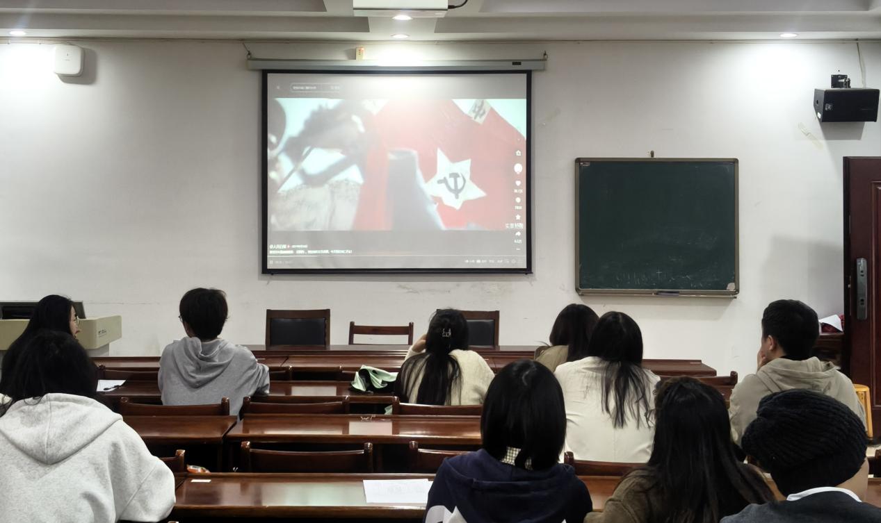 党课结束后,学生党支部组织观看爱国主题影片片段,进一步激发了学生党员传承红色基因、担当时代使命的思想自觉和行动自觉,为推动学生党建工作与党性教育走深走实奠定坚实基础。