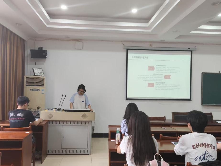 接着,朱琳同学通过伟人具体事例,围绕 “伟人精神”,从内涵、典范、时代价值、日常传承及未来使命五个部分进行系统阐释,让在座党员们对伟人精神有了更全面深刻的理解。