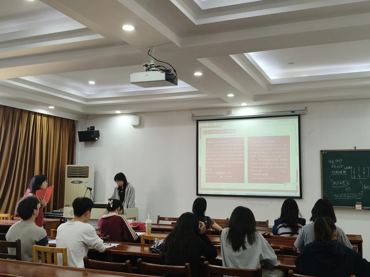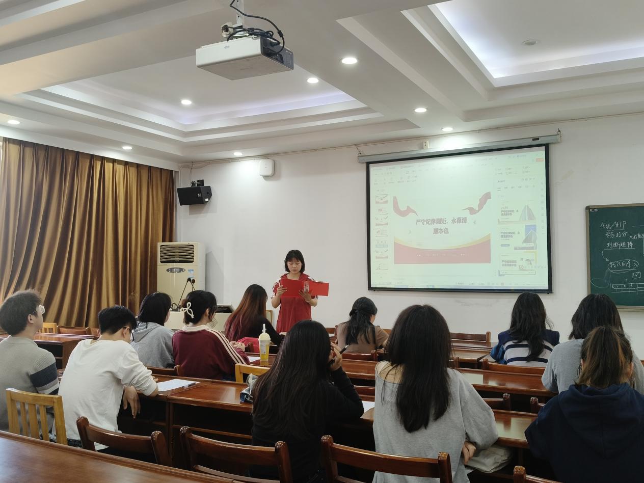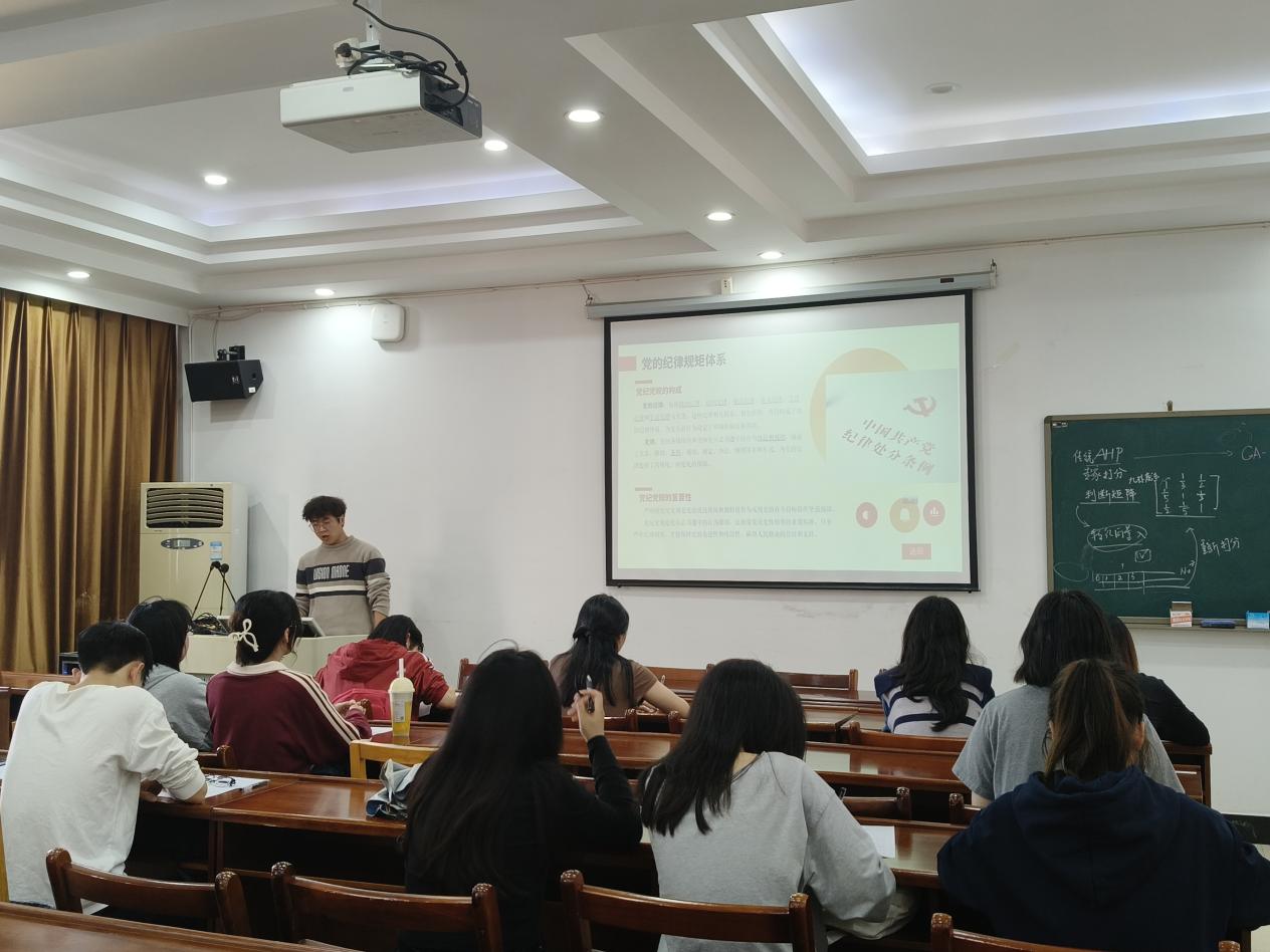 为深入学习贯彻党的二十大精神,强化学生党员的纪律意识和廉洁教育,3月25日下午五点,经管学院于8301开展主题为“先锋赋能,青春讲坛”学生党员讲党课系列活动。本次党课由聂怡芝、胡欣宇、向江三名学生党员主讲。