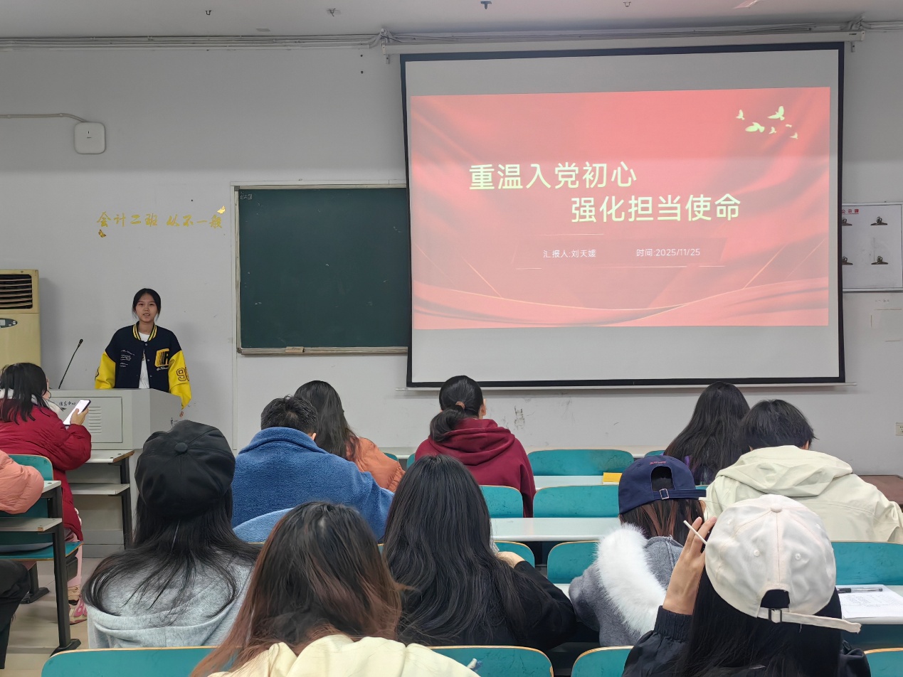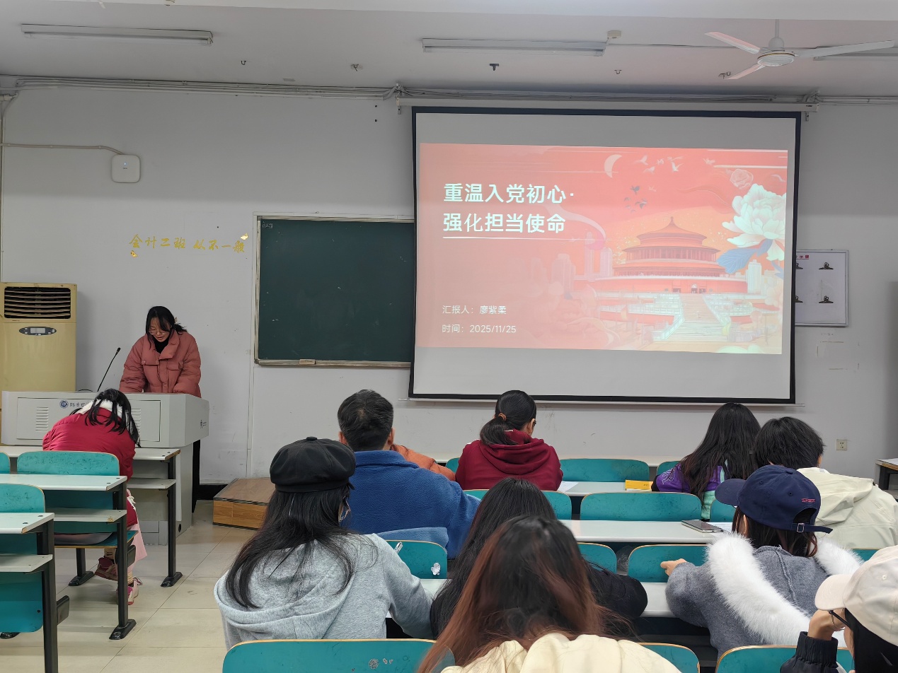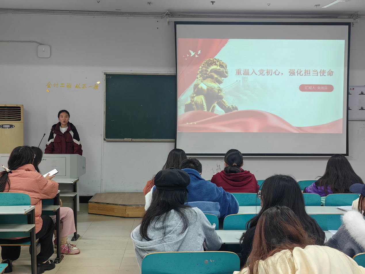 为深入学习贯彻党的二十大精神,进一步增强学生党员的责任感与使命感,11月25日,经管学院学生党支部组织开展“重温入党初心,强化担当使命”主题党课活动。本次活动由学生党支部组织委员朱雨芬,普通党员廖紫柔、刘天媛担任主讲。