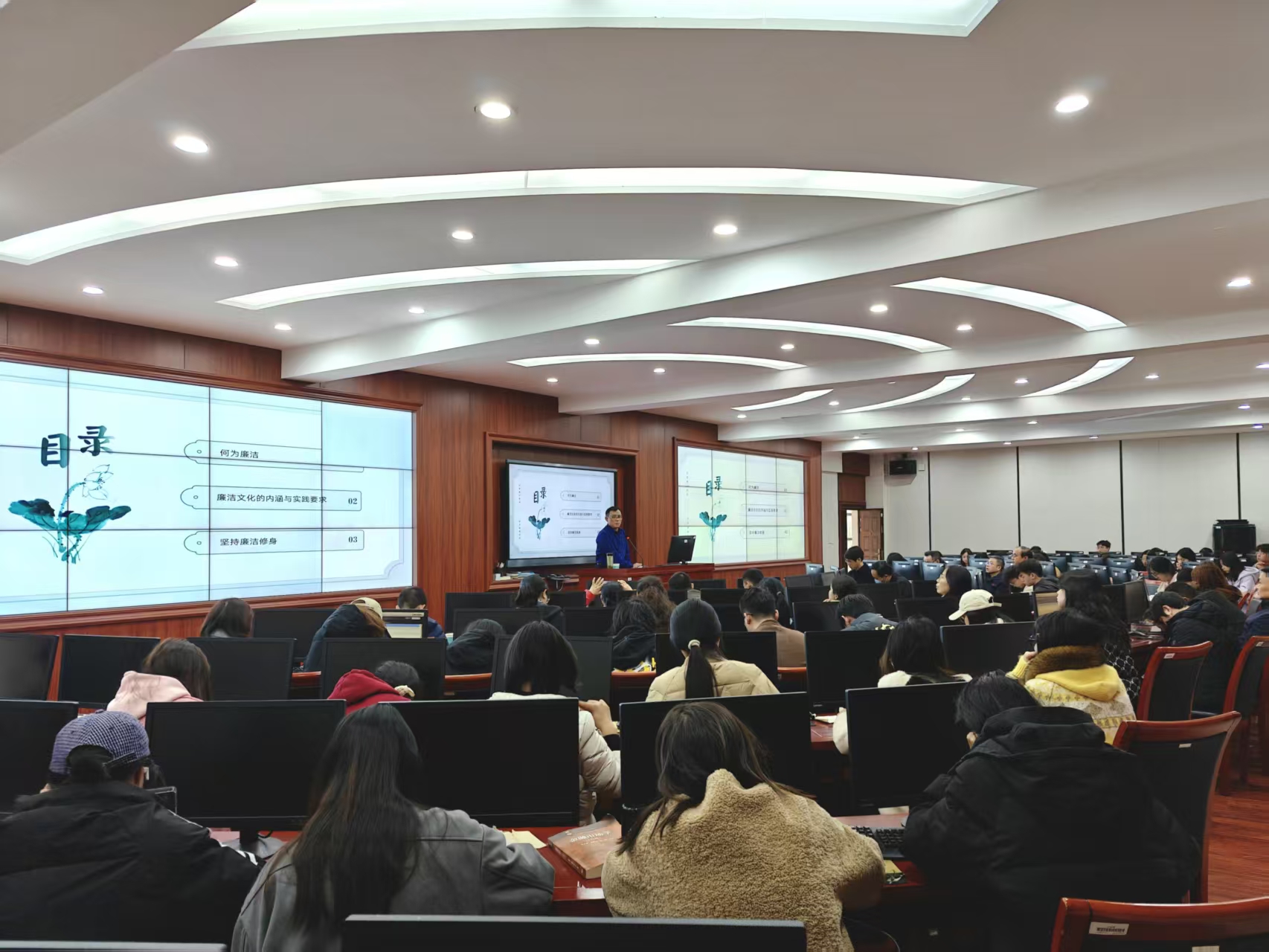 在全校深入开展“廉洁文化宣传月”活动之际,为强化理论武装、深化纪律教育,经管学院党委于12月2日下午举办“厚植廉洁文化 涵养清风正气”专题党课。校党委委员、纪委书记谢贵辉应邀主讲,院党委书记张志刚主持,学院全体教工党员及第53期入党积极分子参加学习。
