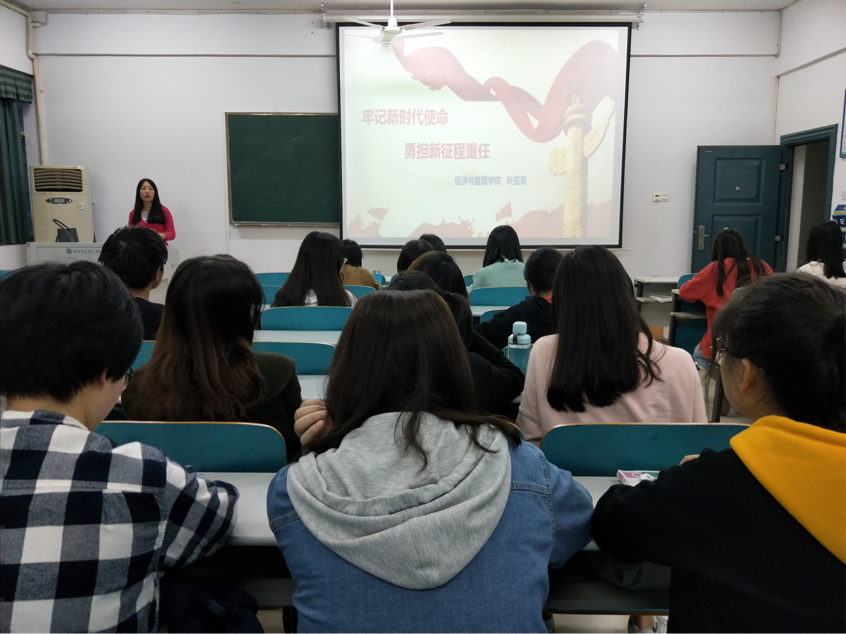 为迎接“五四”青年节的到来,使广大青年团员牢记新时代使命重任,努力践行团学精神,4月17日晚,经管学院于8405教室开展了“高举团旗跟党走 万个支部同宣誓”主题团日活动,团总支书记叶亚男老师作为主讲人出席了本次活动。