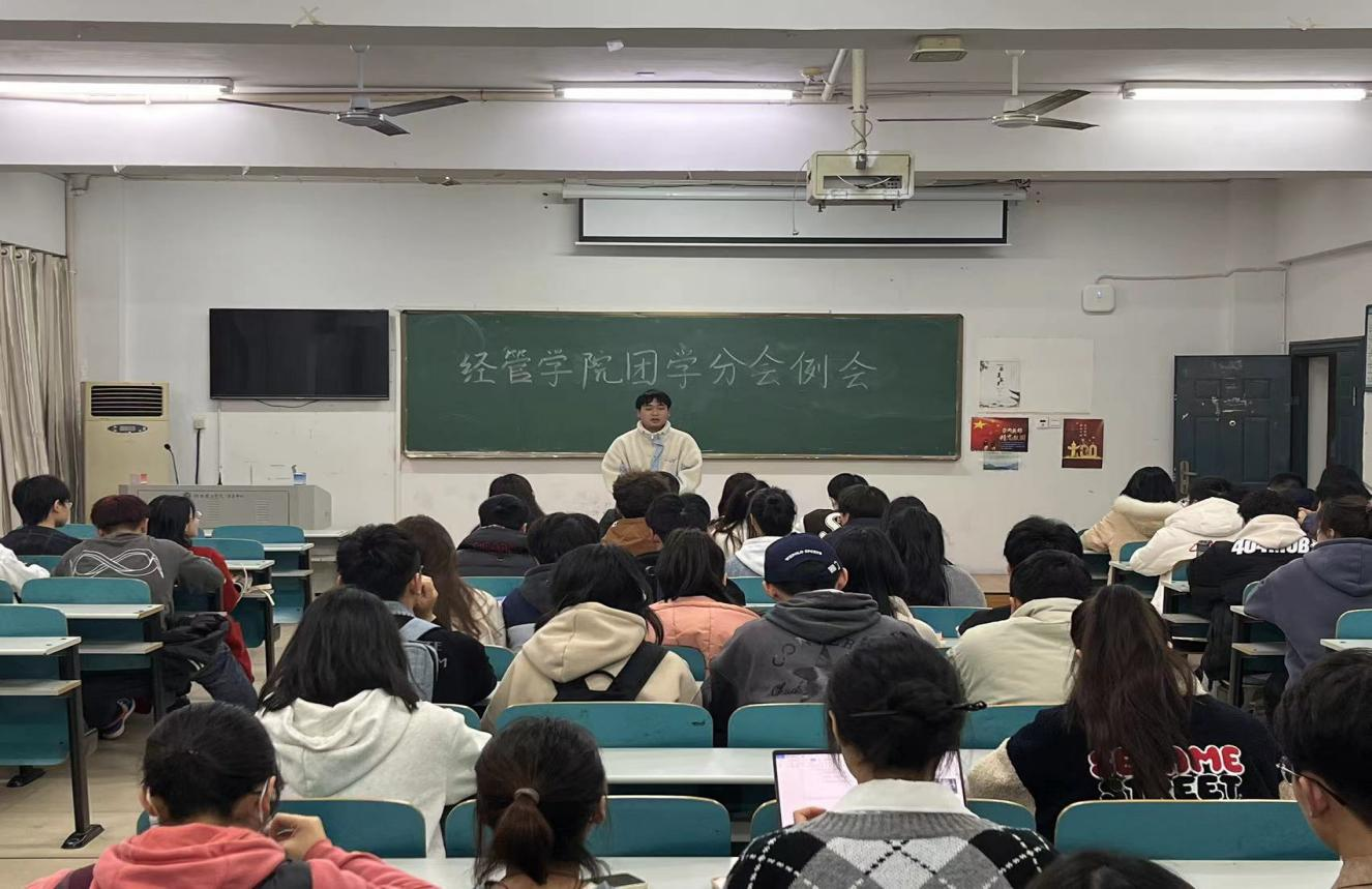 2023年3月6日晚6:00,经管学院在8栋教学楼8410顺利召开了2023年上半年第一次团学分会例会。本次会议由经管学院团委书记叶亚男主持,团学各部门干部干事参加。