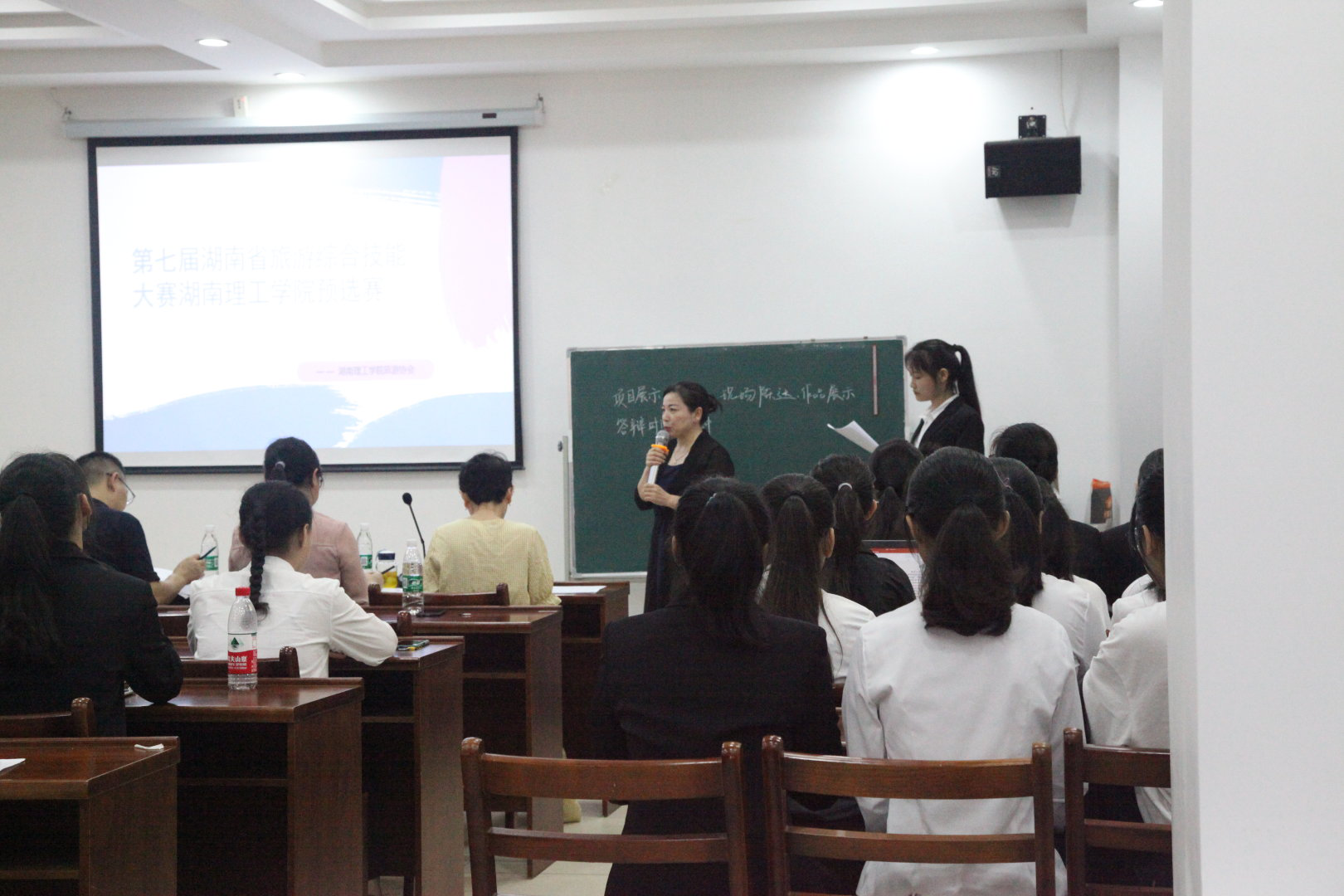 本次选拔赛共入围14支队伍,以策划红色旅游项目为主题,比赛流程分为ppt讲解和评委提问、选手答辩两个环节。比赛开始前,易翠芝老师在开场致辞中肯定了yL23411永利集团官网登录往年在旅游综合技能竞赛中取得的优异的成绩,也肯定了所有学生和老师的辛情付出,并表示相信我们这次可以取得更加优秀的成绩!比赛过程中,参赛选手穿着正式,精彩的讲解给老师和同学们留下了深刻的印象。在答辩环节,面对评委的提问,选手们从容睿智的回答引起场内阵阵掌声。相信有了老师们的精心指导,参加省赛的选手们一定能够大显身手,一展宏图!