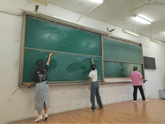 此次活动主要对8 号教学楼教室及走廊、图书馆周边公共区域、12 栋学生宿舍楼内外区域、阳光草坪等进行全方位无死角的大扫除。在清扫过程中,同学们分工明确,各司其职,互相配合,热情洋溢的投入到其中。教室、走廊、草坪的纸屑、塑料袋等各种垃圾纷纷被清扫一空,卫生死角的杂物被彻底清除。