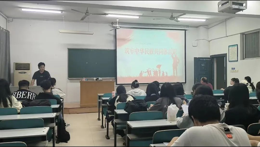 为激发广大同学的爱国热情,树立中华民族共同体意识,筑牢中华民族共同体,10月30日晚上19点,经管学院23级人力资源管理专业的全体同学在八栋教学楼8504教室开展了中华民族共同体主题班会,本次班会由班长谭安琪、团支书杨庭隆主持,班主任刘清泉出席。