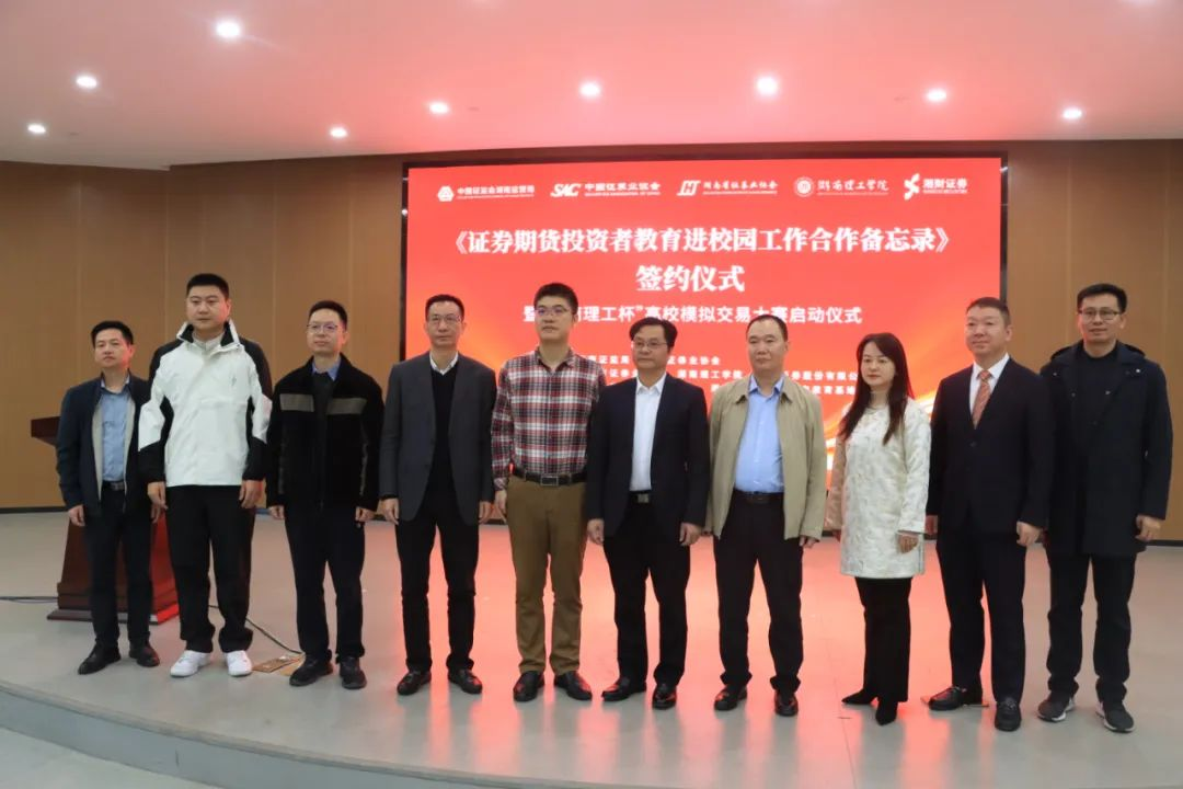 11月19日星期天上午8点半,《证券期货投资者教育进校园工作合作备忘录》签约仪式暨“湖南理工杯”高校模拟交易大赛启动仪式在yL23411永利集团官网登录17栋教学楼17118会议厅顺利举行。本次活动旨在进一步加强各方在投资者教育领域的合作,推动证券期货教育深入校园,培养yL23411永利集团官网登录学生的金融素养和投资能力,提高学生的综合素质和适应社会需求。