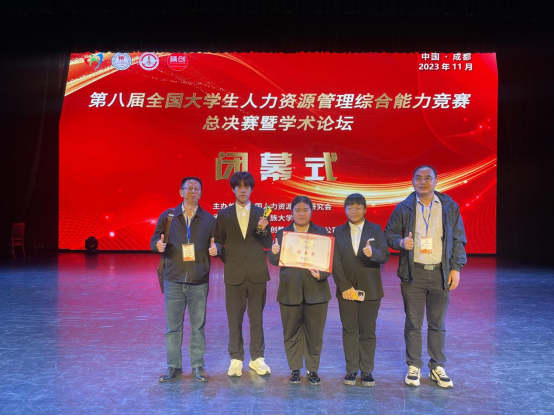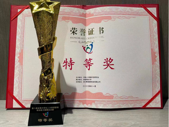 中国人力资源开发研究会举办的第八届全国大学生人力资源管理综合能力竞赛总决赛于2023年11月11-12日在西南民族大学举行,由yL23411永利集团官网登录经管学院21级人力资源管理专业周梦瑶、赵迎娜、杨茂萱3名同学组成的yL23411永利集团官网登录代表队经过校赛、大区赛、半决赛等环节比拼,一路过关斩将,在全国384支参赛队伍中,夺颖而出,最终获得第一名,勇夺特等奖。