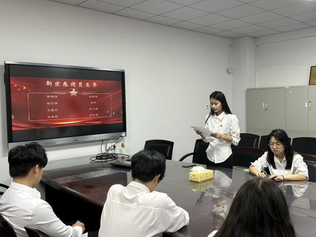 会议伊始,全体人员肃立,奏响庄严的中华人民共和国国歌。随后,蔡濛宣读了八名新发展的团员名单,并邀请新发展团员代表李锦镇上台发言。李锦缜在发言中表达了为团组织贡献力量的坚定决心,并号召所有新发展团员积极投身于团组织的各项工作,以青春的活力和热情,共同书写属于他们的精彩篇章。