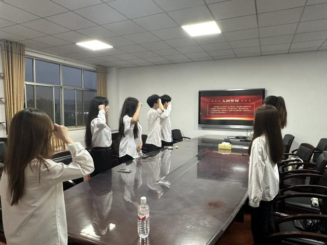 为深化新团员对团组织的认同感和归属感,激发新团员坚定共产主义信念,自觉遵守团内规范,充分发挥团员的先锋模范作用,经管学院于2024年6月2日晚七点半,在8307会议室举行入团仪式。此次会议由基建部干事蔡濛担任主持人,八名新发展的团员共同参与。