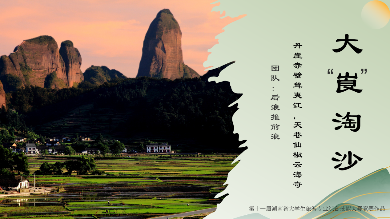 由吴忠才教授、金一博士指导,秦骏好、尹珍妮、贾靖雯三名同学共同完成的营销策划作品《大“崀”淘沙》,以“崀山风景名胜区”为研学选址,“激发学习兴趣,体验当地文化”为研学目的,“大‘崀’淘沙”为研学主题的作品创作要素,旨在借助崀山研学旅行,为中小学生提供更加丰富、多元的学习体验,通过亲身实践加深对课本知识的理解与运用。