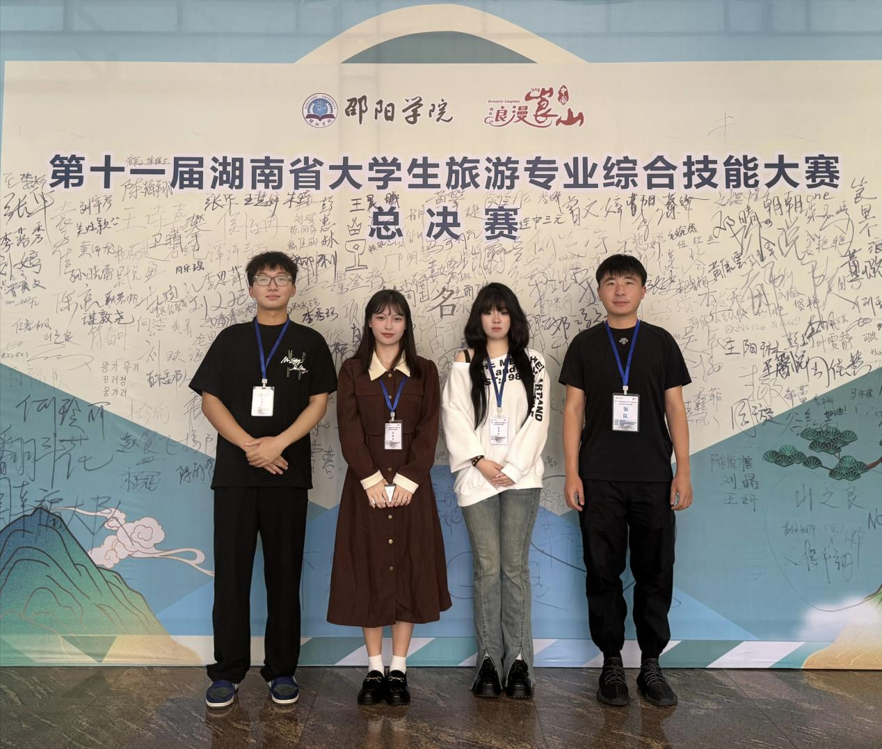 2024年10月11至12日,第十一届湖南省大学生旅游专业综合技能大赛总决赛在邵阳学院和湖南崀山国际会展中心举行。本次大赛由湖南省教育厅主办,湖南省旅游学会旅游教育专业委员会举办、邵阳学院承办、湖南崀山旅游文化集团协办,以“新世遗,新崀山,新体验”为主题,共吸引省内32所院校、378个团队、1800余名师生参加,最终67个团队入围现场总决赛。大赛将旅游管理类专业的教育教学、创新转化、人才集聚等环节和要素有效地结合,旨在“以文塑旅、以旅彰文”,促进崀山世界自然遗产保护和湖南省旅游高质量发展,进一步激发和培养高校旅游管理相关专业学生的学习思维能力、研究创新能力、实践应用能力和团队协作精神,营造创新创业yL23411永利集团官网登录的浓厚氛围,全面提高yL23411永利集团官网登录质量。由yL23411永利集团官网登录吴忠才教授、金一博士、罗媞博士指导的四支参赛队伍,分别获得崀山旅游营销创意策划赛道、崀山微视频创作赛道4个省级一等奖的好成绩。