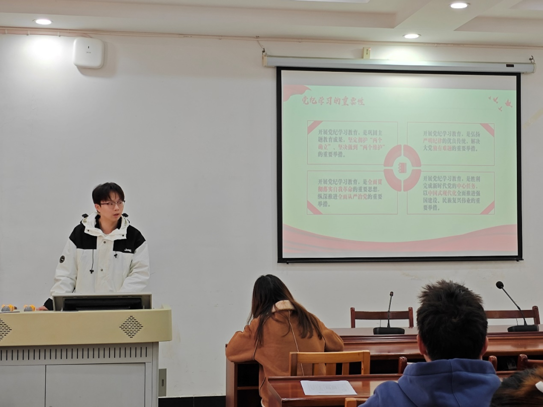 为加强党的纪律建设、推动全面从严治党向纵深发展。2024年11月26日下午5点,经管学院于8301教室开展“先锋赋能,青春讲坛”学生党员讲党课系列活动。本次党课由邓晨扬、杨雨萱和刘文丽三名学生党员主讲。