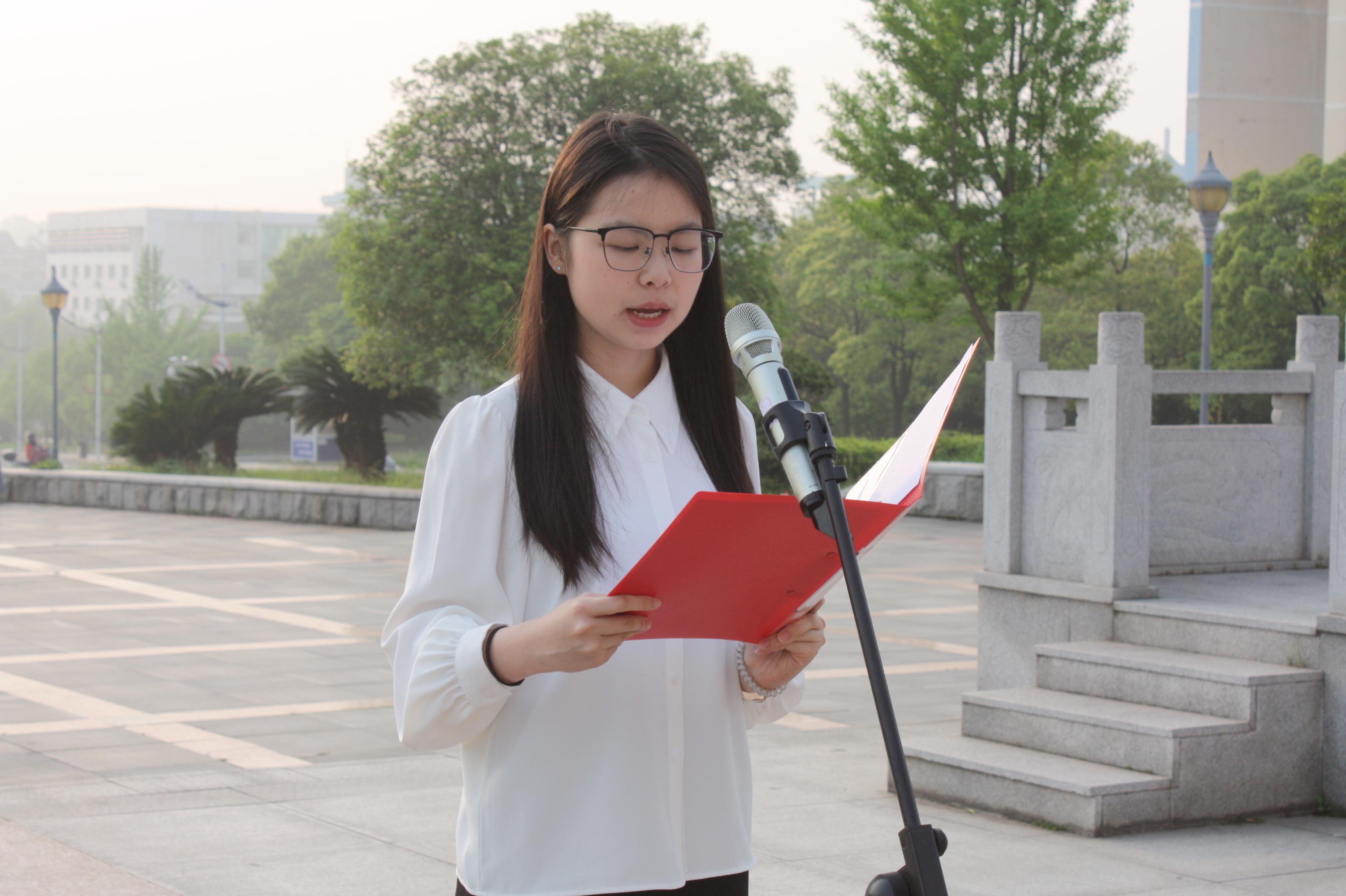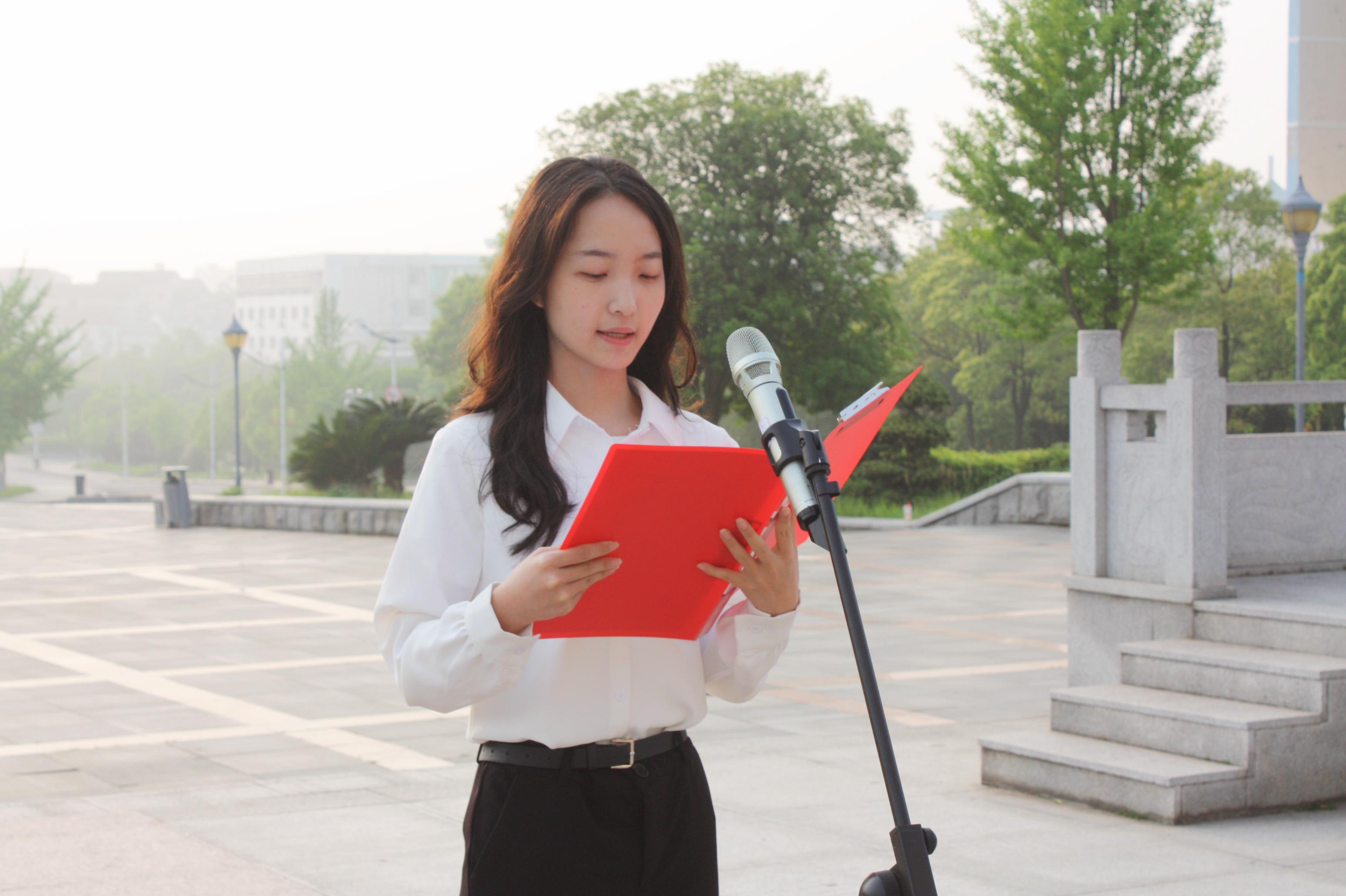 升旗完毕,学生代表胡琰、凌芝同学依次发言。胡琰同学在发言中提到在历史的长河中,爱国的故事从未间断;进入新时代,爱国的内涵更加丰富多元,激励同学们把爱国渗透在我们的日常生活中。并结合自己的实际,就如何平衡好学习与班级服务等工作的经验与同学们分享。凌芝学姐激励同学们站在新的起点意味着新的机遇与挑战,希望大家以更昂扬的斗志投入学习,以更开放的姿态拥抱生活,在奋斗中书写青春答卷。两位同学真挚的话语引发全场共鸣,现场掌声此起彼伏。