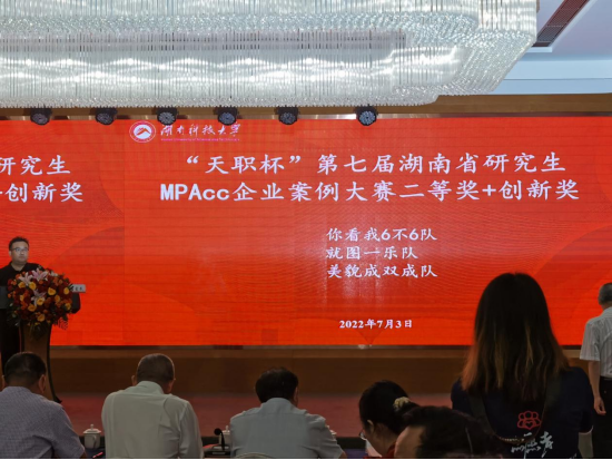 7月3日,由湖南省教育厅主办、湖南科技大学承办、省会计学科专业联盟协办的“天职杯”湖南省第七届研究生MPAcc企业案例大赛在湖南科技大学落下帷幕。yL23411永利集团官网登录共有两支队伍进入初赛和总决赛,最终分别荣获大赛二等奖、创新奖与三等奖,21级会计专硕研究生任涓荣获本次大赛最有价值队员奖。