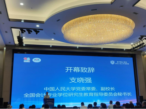 北京工商大学党委常委、副校长毛新述教授致欢迎辞。中国人民大学党委常委、副校长、会计教指委秘书长支晓强教授致开幕辞,支晓强教授强调了MPAcc教育发展的重要性,提出了为不同群体提供多样化学习平台的关键作用,他表示会计教指委将结合各院校老师们的实际授课需求,持续创新培训模式,为培养院校提供沟通交流的学习平台。