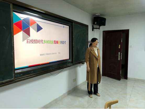 由于新冠疫情的影响,国内外民宿业发展饱受冲击。罗媞博士以此作为切入点,围绕国内外民宿产业发展状况、我国乡村民宿的发展历程及后疫情时代乡村民宿的发展路径三部分展开讲座。首先,她向同学们介绍了全球民宿业发展状况,并详细对比了日本、我国台湾地区及其他欧美国家民宿业发展模式之间的差异。接着,她以浙江莫干山民宿发展为例,向同学们详细讲授了我国乡村民宿业的发展沿革。随后,她针对当前疫情背景下民宿业的发展,提出了相应的发展路径。最后,罗老师就当下社会热点话题“网红经济”“全产业链发展模式”,结合我国乡村民宿业发展现状,与同学们进行了交流、互答。